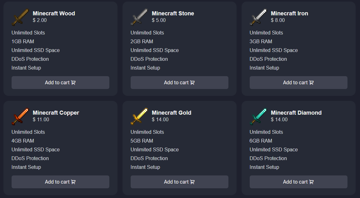 Choose the desired Server Package. The more players and mods you have the more ram you will need.