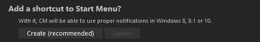 Optional: Select Create (recommended) to add a shortcut to the Start Menu.