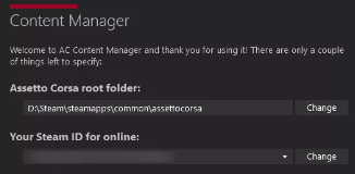 The app should automatically detect the Assetto Corsa Steam directory, Steam ID, and name.
