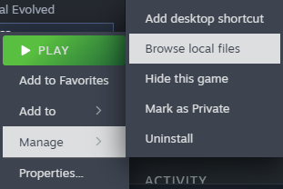 Right-click Assetto Corsa on Steam, hover Manage, and select Browse Local Files.