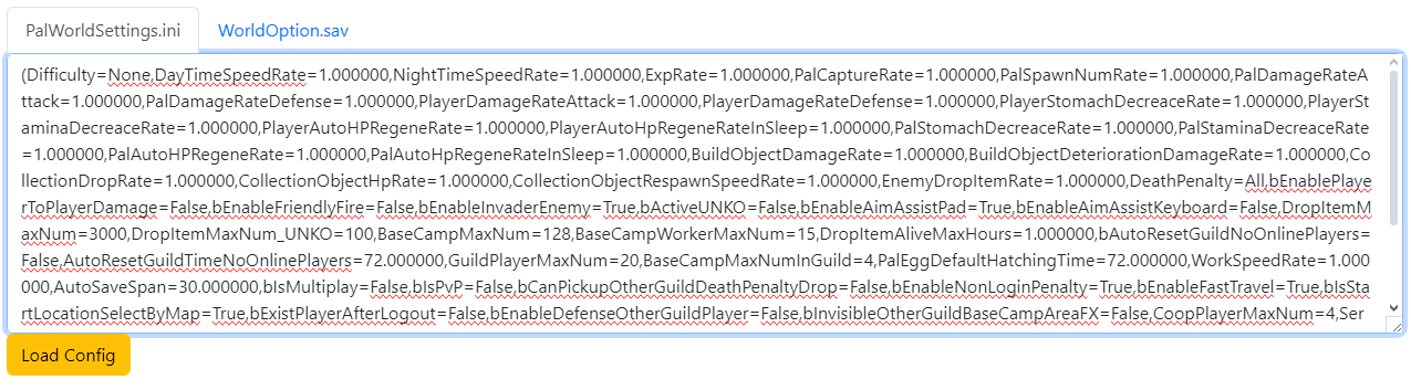 PalWorldSettings.inifile into the Import Settings menu to use existing settings.